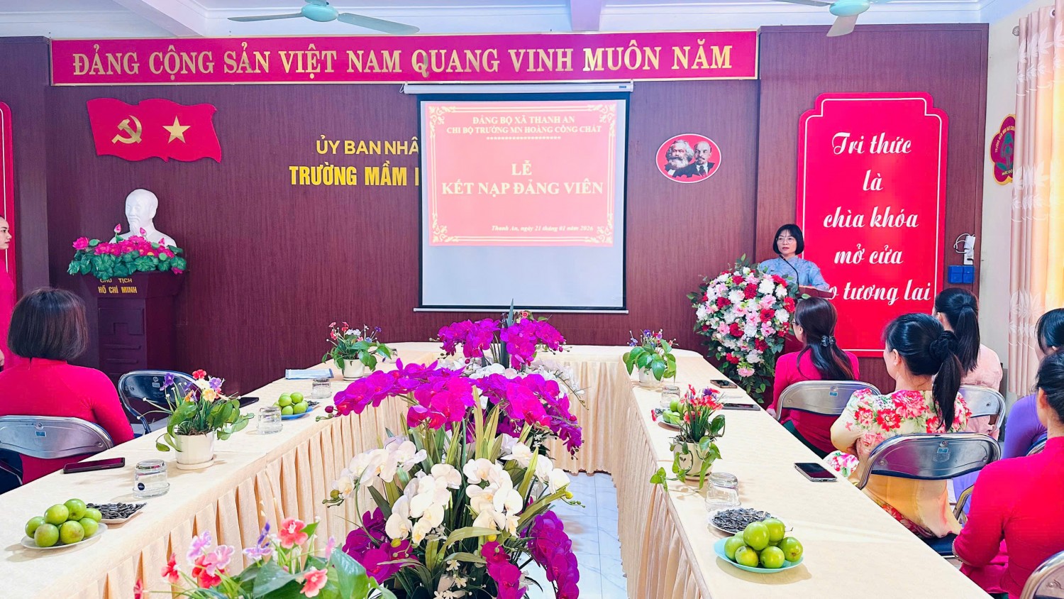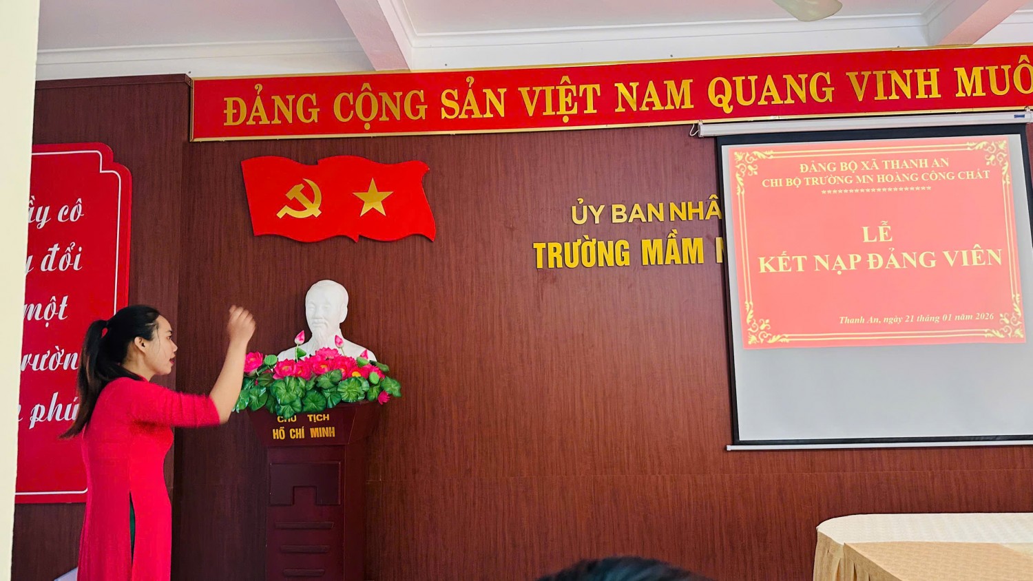 Thực hiện công tác xây dựng Đảng và phát triển đảng viên trong các cơ sở giáo dục, ngày 21/01/2026 Chi bộ Trường Mầm non Hoàng Công Chất đã long trọng tổ chức Lễ kết nạp Đảng viên mới cho quần chúng ưu tú đồng chí Lò Thị Phúc, giáo viên đang công tác tại nhà trường.